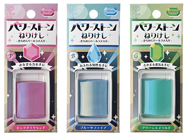 シード キラキラ光る「パワーストーンねりけし」と、消しゴム&ケースがワンパッケージになった「プシュケシ」を発売