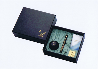 同製品は、最高級の蒔絵技法である研出(とぎだし)高蒔絵が駆使され、「勝虫」と「蓮の花」を絵柄のモチーフとした。