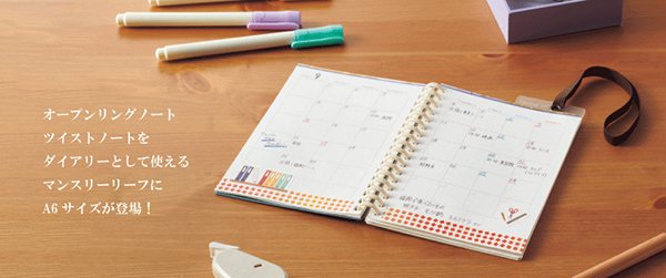 これまでマンスリーリーフはA5サイズのみのラインナップだったが、ユーザー待望のA6サイズマンスリーリーフ(税込330円)が登場した。