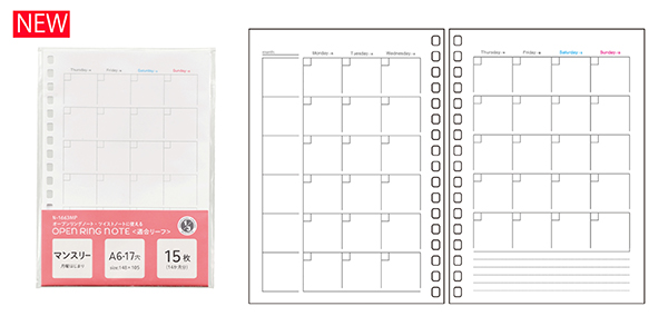 LIHIT LAB.は、『オープンリングノート』シリーズのリーフにて、A6サイズの日付フリーマンスリー(1品番1SKU)を、2025年11月初旬から発売する。