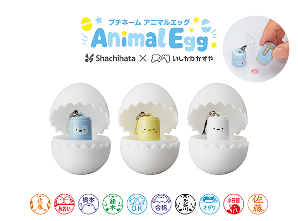 『プチネーム Animal Egg(アニマル エッグ)』(税込1,980円)は、たまご型ケースに入った、鳥がモチーフのネーム印。