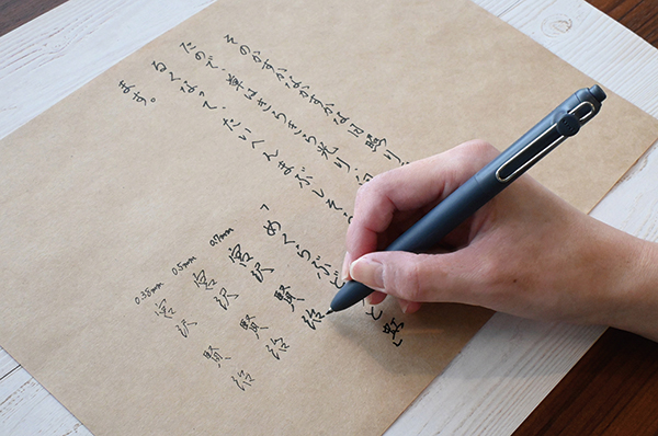 0.7mmボールの水性ボールペンでありながら、やわらかい書き心地とにじみを抑制するというuniball ZENTOインクの特長を感じられる1本だ。