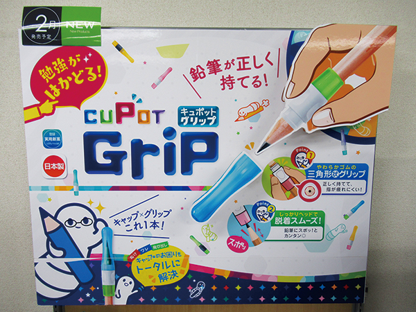 また、やわらかなゴムの三角状のグリップで、鉛筆を正しく持つことができ、しっかりヘッドのキャップで脱着がスムーズな「キュポット グリップ」を2月から新発売する。タッチ認証などに便利な、吊下げ名刺のリールひもを従来品の10倍の耐久性に高めた新製品「プロ耐リール」シリーズも発表した。