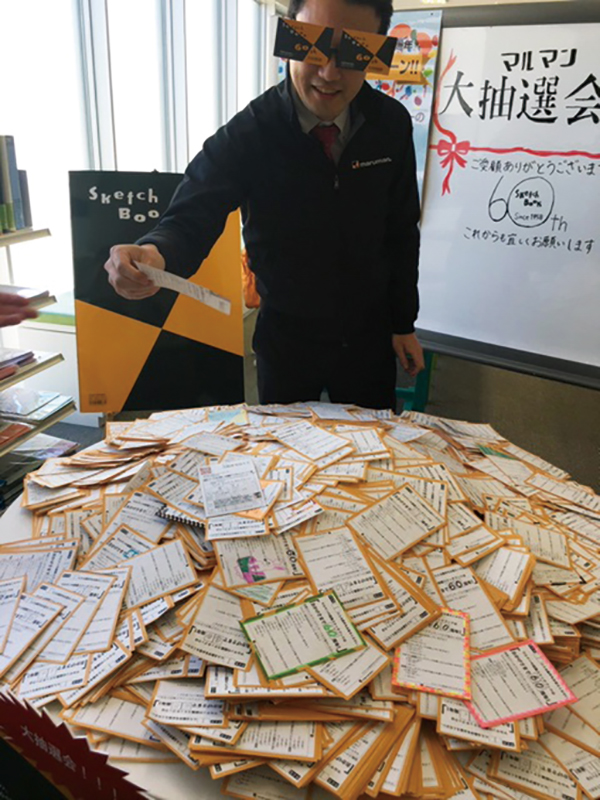 マルマンは、看板製品「図案スケッチブック」60周年を記念した「大感謝 クイズキャンペーン!!」の当選者を決定。A賞の世界に一台だけの「図案スケッチブック」柄ホンダスーパーカブの当選者は東京都在住の道本さんに決定した。