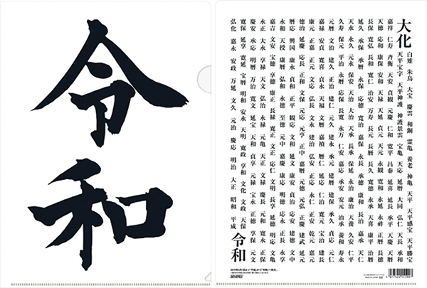 商品例は、新元号クリアファイル(ビバリー)、武田双雲×新元号 手ぬぐい(エンスカイ)、新元号記念カレンダー壁掛・卓上兼用 5月始まり(新日本カレンダー)、新元号手帳(ダイゴ―)などの文具紙製品のほか、チタン2重タンブラー新元号 金富士/赤富士(HORIE)なども展開する。