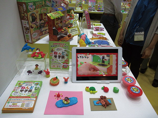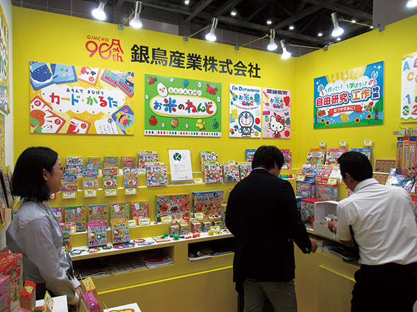 銀鳥産業は、安全で身体に優しいお米を使った「お米のねんど」を中心に紹介。3歳以上の幼児を対象にする「ぺたぺたシールでおけいこ」、「ファーストパズル」や「カード・かるた」、自由研究・工作商品など、子どもの成長をサポートする商品群を展開した。