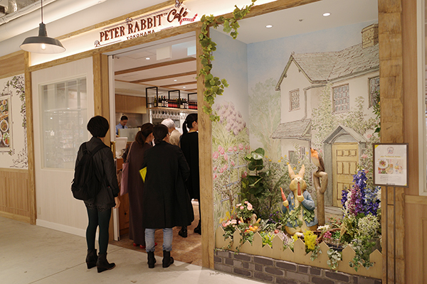 2階にはソニー・クリエイティブプロダクツの「ピーターラビットカフェ」がオープン。ピーターラビットの世界観をイメージした店内や、店舗限定メニューを提供するほか、ピーターや仲間たちが大好きな新鮮野菜や季節の果実を豊富に使用したブッフェコーナーを導入。