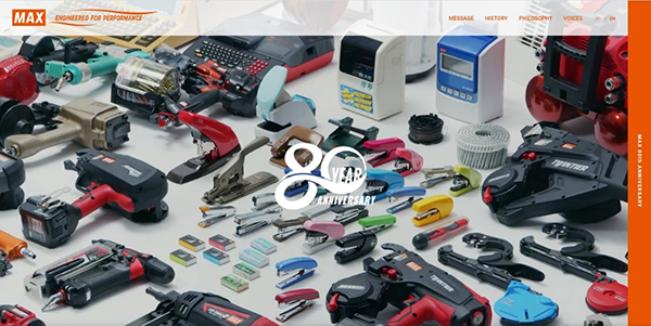 マックスは、2022年11月26日に創立80周年を迎えるのを記念して、様々な周年イベントを展開していく。その第一弾として、1月14日に特設サイトを公開した。各コンテンツを通じ、マックスの歴史や製品にかける想いを発信するとともに、新たに策定したコーポレートビジョンおよびブランドメッセージについても掲載している。