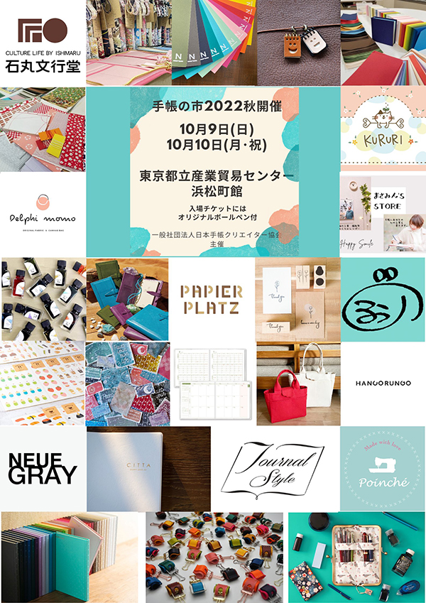 一般社団法人日本手帳クリエイター協会(本社:滋賀県守山市、代表理事:宮崎じゅん、青木千草)は10月9日〜10日、リアルイベント「手帳の市 2022年秋」を東京都立産業貿易センター浜松町館にて開催する。リアルイベントの開催は4月の京都に続き2回目。