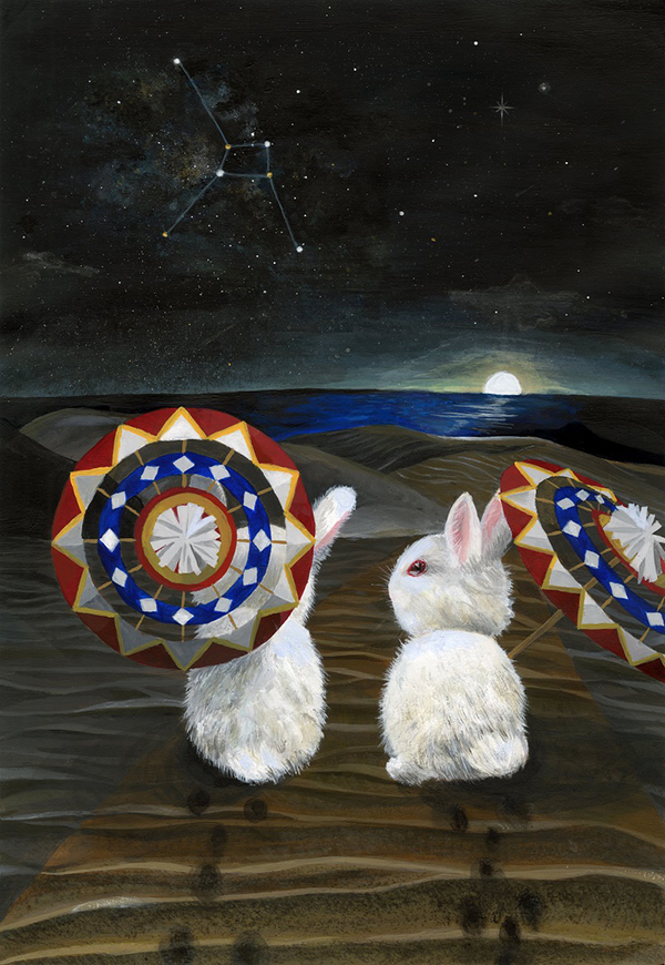 作品に込めた思い 鳥取砂丘、神話『因幡の白兎』、しゃんしゃん傘、星取県と称される美しい夜空に、そこには県特産品の星座も。私が好きな鳥取のものたちを画用紙1枚に詰め込み、幻想的な光景に仕上げました。鳥取にきなんせ!