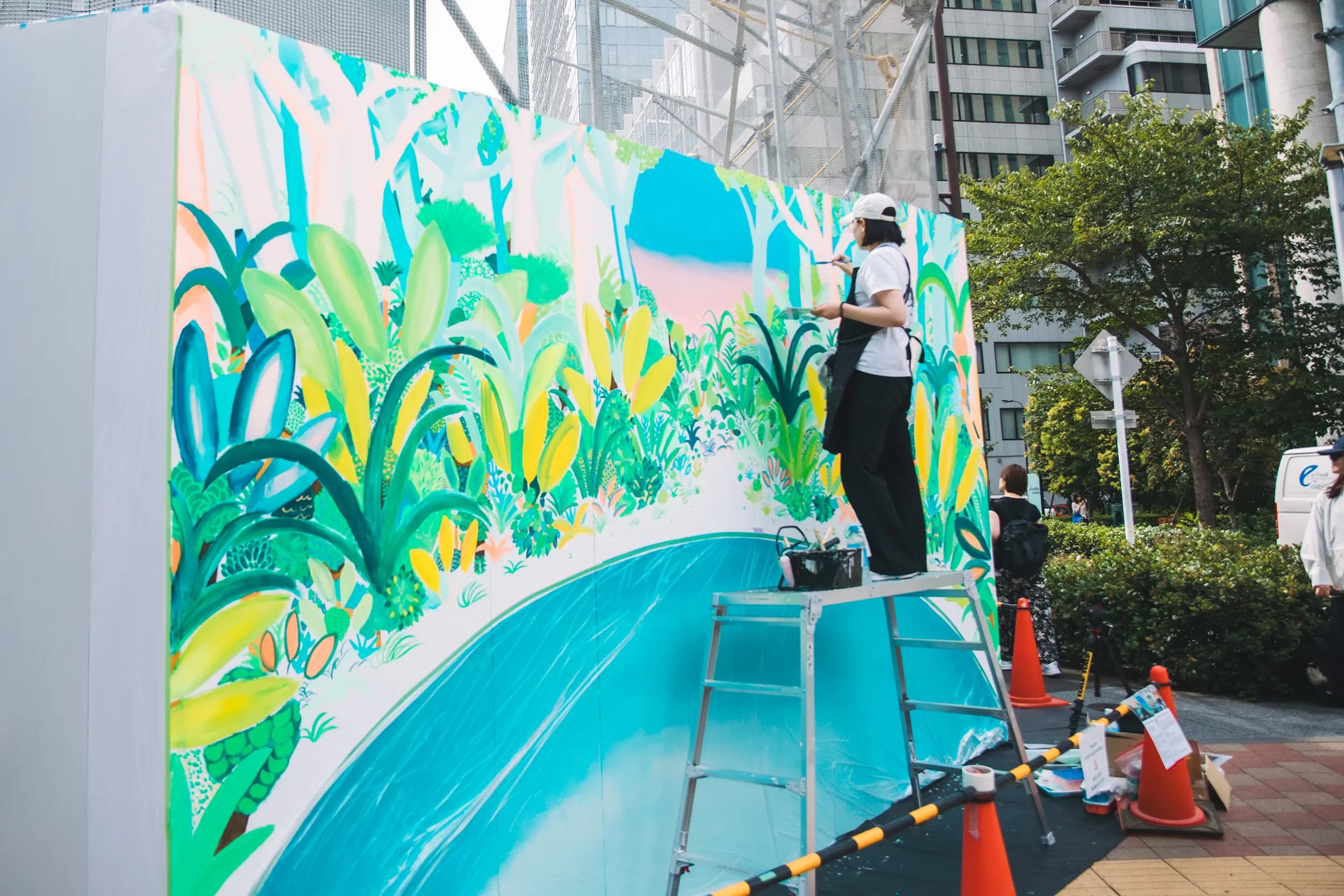 第2回目の今年は、250件以上の応募の中から「CLEMOMO」「KOTOKO」「北林みなみ」「安眠」の4組のアーティストを選出し9月14日から日本橋エリアの3ヵ所で壁画の制作を開始した。