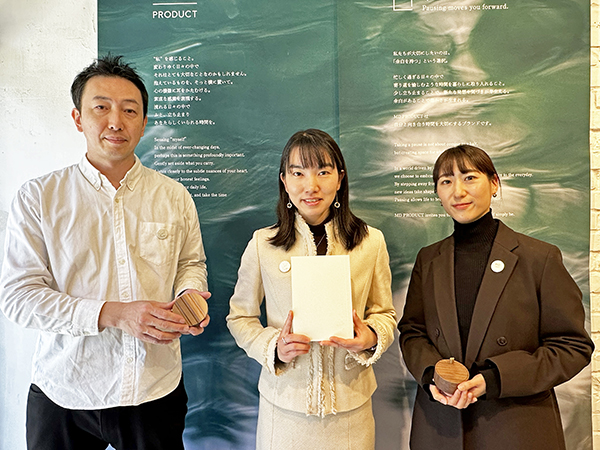 最後に、同社デザイナーの齋藤泰陽氏が新領域のプロダクトを紹介。自分と向き合う“時間や環境”を表現・提案するアイテムとして、香りと煙で約1時間の経過を感じ取る「MD香時計」と、ペンの居場所を整える「MDペンレスト」を披露した。