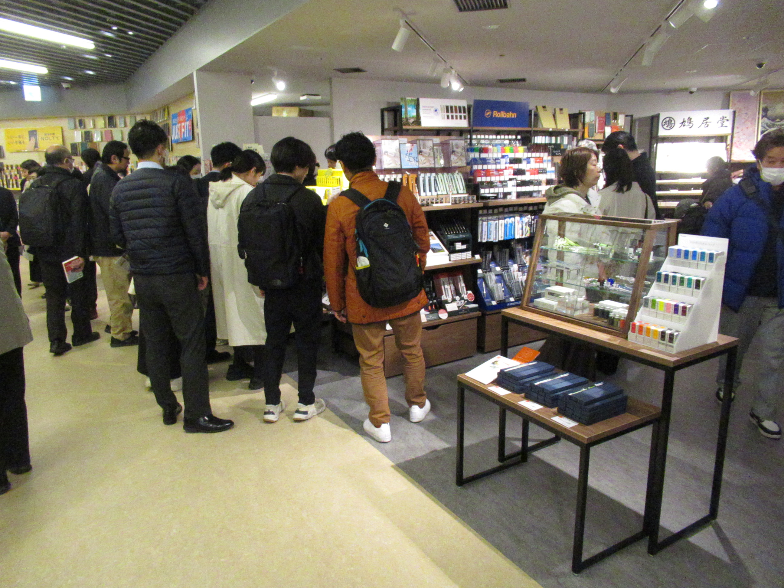 2階の神保町いちのいちには、セレクトした文具や筆記具が品揃えされた。人気のシールはおひとり様5点までの制限がある中で、多くの人が手に取り買い求めていた。