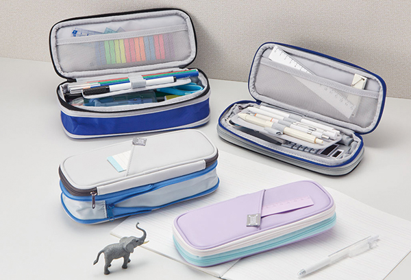 レイメイ藤井は、状況に応じてフレキシブルに収納力が変えられる「キャパレージペンケース」(4色、税込2200円)を10月下旬に発売する。