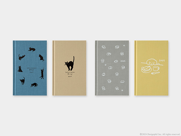 デザインフィルは、展開するプロダクトブランド「ミドリ」より、日々の出来事を日記のように綴る手帳『本型ダイアリー』(ネコ柄:紺・ベージュ、イヌ柄:グレー・黄色の計4柄、全てB6変型判サイズ、税込2,86...