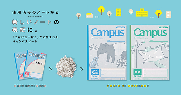 コクヨ 使用済みのノートから新しいノートの表紙に。キャンパスノート<つなげるーぱ!>発売