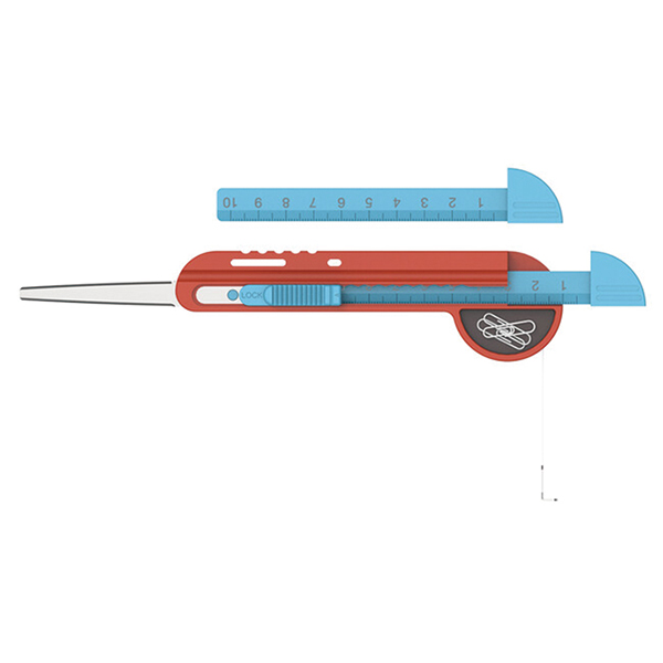 ナカバヤシは、4つの機能を搭載した「メジャーが付いたギザノコ刃カッター」(税込1925円)を9月上旬から全国で発売する。