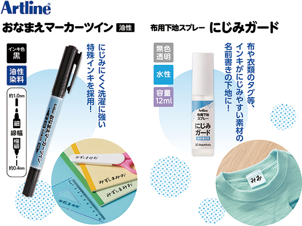 シヤチハタ「おなまえマーカーツイン&布用下地スプレー にじみガード」