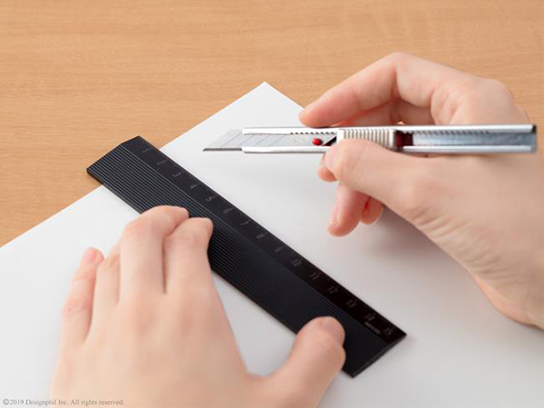 下側を押さえると滑り止めが浮き、スムーズに定規を動かすことができる。