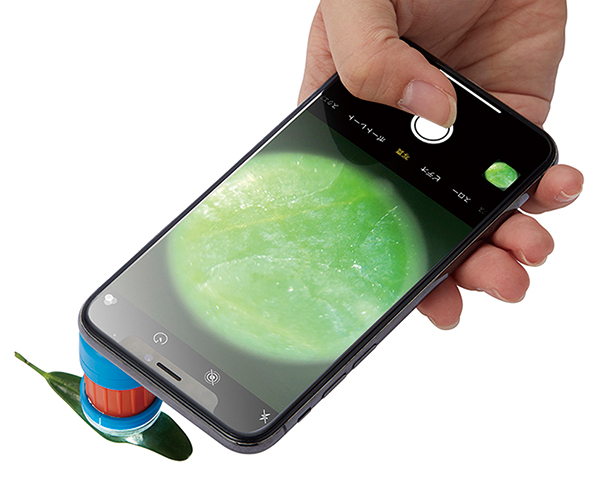スマートフォンのカメラレンズを接眼レンズに合わせれば、簡単にスマホ撮影ができる。カメラのズーム機能を使って、100倍以上で観察・撮影することも可能だ。