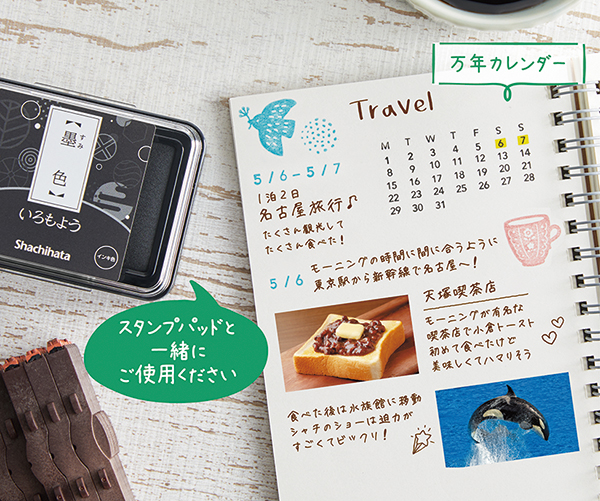 柄の凹凸をはめ合わせて、タテヨコに連結することができる。ページ番号や日付などを押せる「ナンバリング」(税込2200円)と、習慣の記録などで使える「万年カレンダー」(3080円)の2タイプを用意した。
