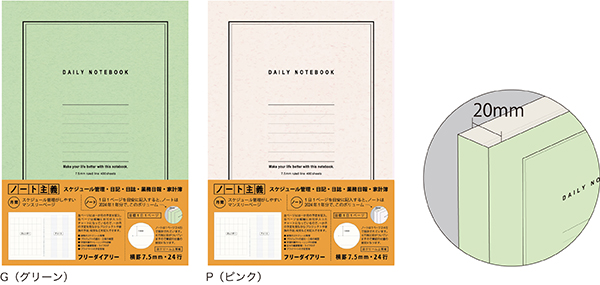 日付なしのフリーダイアリーのためスケジュール管理はもちろん日記帳・趣味のログ手帳としてなど、使用目的に合わせて自由にカスタマイズして使え、さらに“書くこと”が楽しくなるノートとなっている。(G)