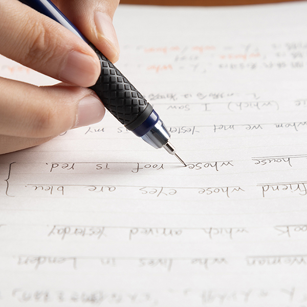従来のペン先が細いタイプのシャープペンシルは筆記時の文字の視認性は高いものの、ペンケース等に収納して持ち運んでいる時にペン先の折れ・曲がりが生じるという悩みがあった。