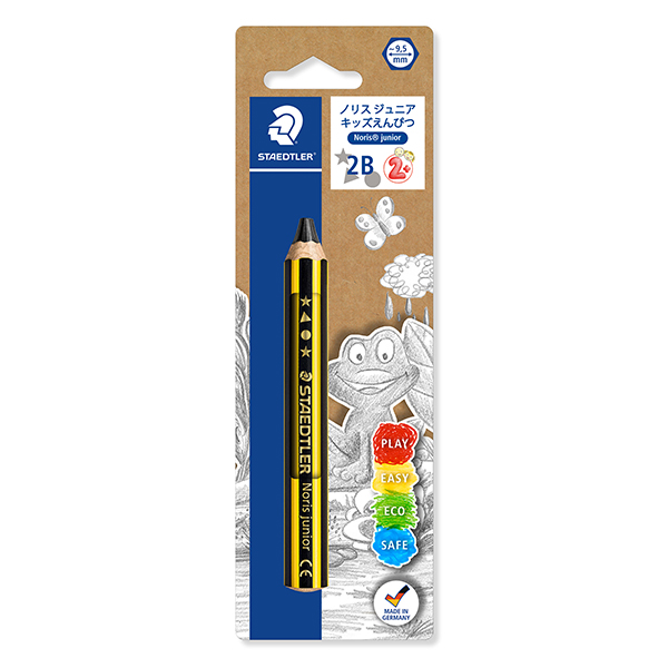 ステッドラーは、子どもがはじめて持つのにぴったりの2歳から使える鉛筆“ノリス ジュニア キッズえんぴつ”(税込605円)を発売する。