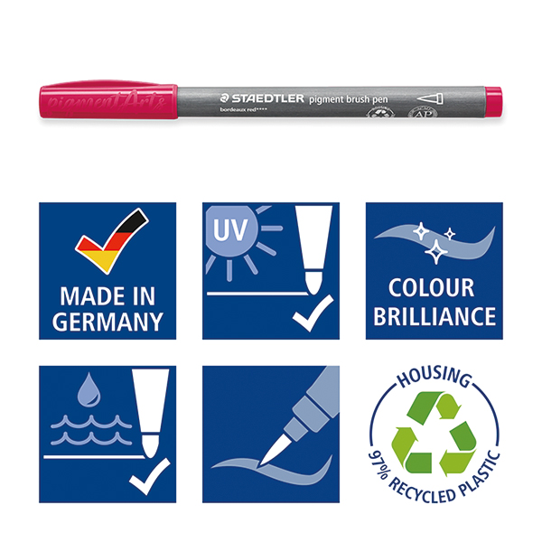 ステッドラー日本は、独自開発の「マルチインク」を採用した、「371ピグメントブラッシュペン」(全36色、1本税込330円)を11月下旬から発売する。