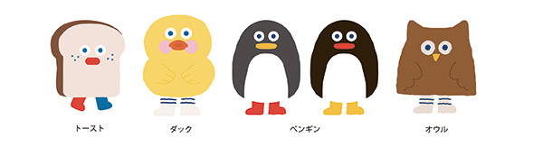 濃く鮮やかな筆跡が特長の「ジュース」、細書きながらなめらかな書き心地を実現した「ジュースアップ」の2アイテムをベースに、「トースト」「ダック」「ペンギン」「オウル」のキャラクターをデザインしている。