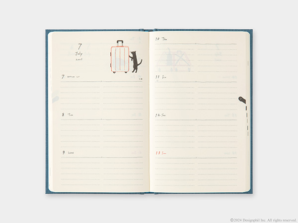 デザインフィルは、展開するプロダクトブランド「ミドリ」より、日々の出来事を日記のように綴る手帳『本型ダイアリー』(ネコ柄:紺・ベージュ、イヌ柄:グレー・黄色の計4柄、全てB6変型判サイズ、税込2,860円)を2024年7月25日(木)に発売する。