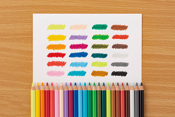 色鉛筆は、多彩な色展開を持ち、芯の削り方や持ち方、そして筆圧によって描線の太さや色の濃さなどを自由に調整できる特徴を持つ。