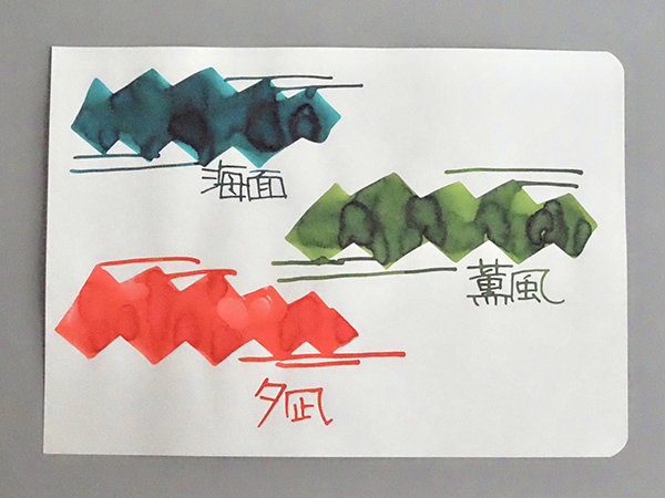 カラーラインナップは、「海面」(越前海岸の浜辺から見える、波がゆっくりと揺らぐ海の青)、「薫風」(海岸線から見える山々の、風に揺れる新緑の色)、「夕凪」(日暮れ時、風が止み、穏やかな海に映る夕日の色)の全3種類。