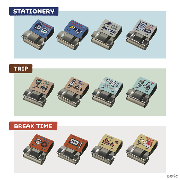 「ericコラボデザイン スライドクリップ」(税込660円)は、人気消しゴムはんこ作家eric氏とのコラボレーションデザインのスライドクリップ。