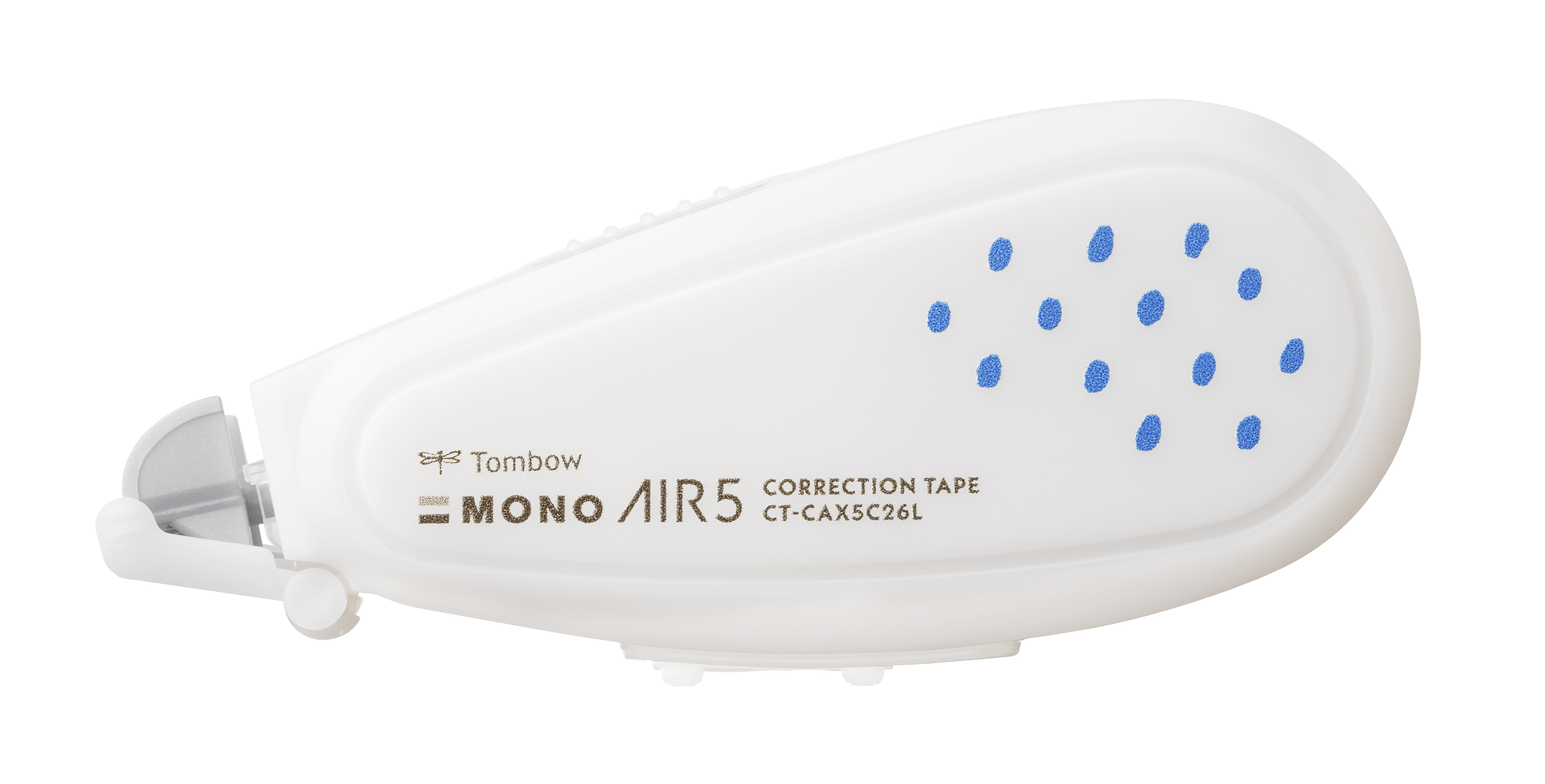 本製品は、ミルクグラスカラーを修正テープのボディに採用。柔らかさ、やさしさで仕事や学びに寄り添う。カラー展開は6色、代表色のミルクホワイト、これに色味を加えた、ミルクブルー、ミルクオレンジ、ミルクブラウン、ミルクグリーン、ミルクグレー。ボディに点々と手書き風ドットをバイカラーでプリント。手にした感触で修正テープの方向も示す。