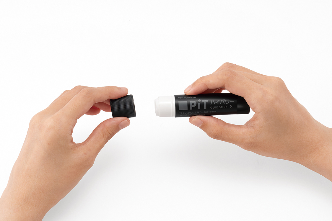 Sサイズのスティックのりは、ペンケースでキャリングして、学習机の上やPCサイドで使用されるため、ステーショナリーカラーと調和するブラックにして空気感を合わせた。