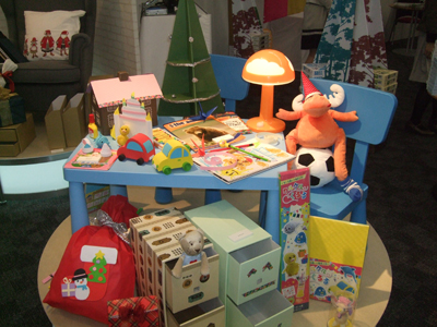キョクトウ・アソシエイツは、ステーショナリーのコーナーで学習帳や各種ノート、ラッピング用品などを展開。アジアから輸入したデザインノートが参考出品された。