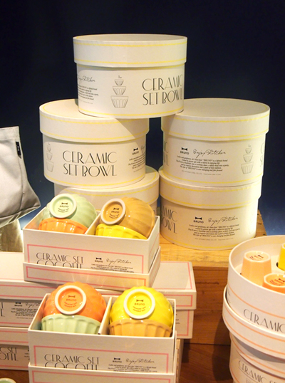 「ブルーノ」では、デザイン性が高いだけでなく、機能性にも優れたコンパクトタイプのケトルやブレンダ―、コーヒーメーカーなどが並ぶ。シューズボックスやハットボックスを意識したパッケージになっており、ギフトにも喜ばそうだ。
