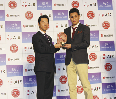 2013年ぐっすり眠って活躍した著名人をベストネムリストとして表彰する「眠り of the year 2013」授賞式が、12月23日都内で行われ、東北楽天ゴールデンイーグルスの田中将大選手とEXILEパフォーマーのTETSUYAさんが表彰された。