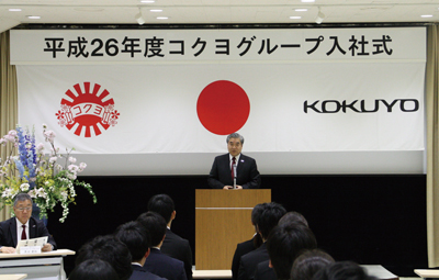 コクヨ(大阪市、黒田章裕社長)は、4月1日、本社で2014年度の入社式を開催し、コクヨグループの新入社員55名(男性32名・女23名)が出席した。