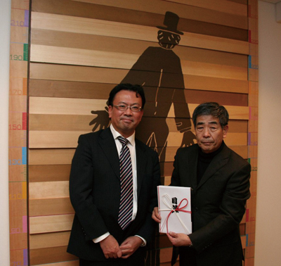 3月3日、仙台市の「仙台レインボーハウス」で、コクヨ東北販売会社の岡竹博昭社長が、あしなが育英会東北事務所社長の林田吉司氏に、備品の目録を贈呈した。