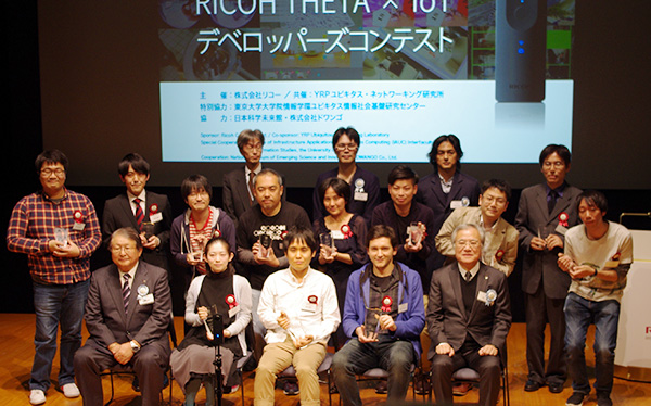 リコーは、ワンショットで360°の全天球イメージ・動画が撮影できるカメラ「RICOH THETA」のアプリケーションやガジェットを開発するオープンコンテスト「RICOH THETA × IoT デベロッパーズコンテスト」の表彰式を、11月7日、東京都江東区の日本科学未来館で実施した。
