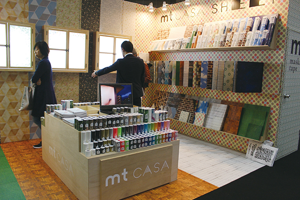 文具業界からはカモ井加工紙が出展。9月に発売された「mt CASA SHEET」をメインとして展示。壁や床に貼ることができるシートで、同社担当者は「今までの製品と違って耐水性、耐久性のあるシート。この製品でインテリア業界にも進出していきたい」と語った。