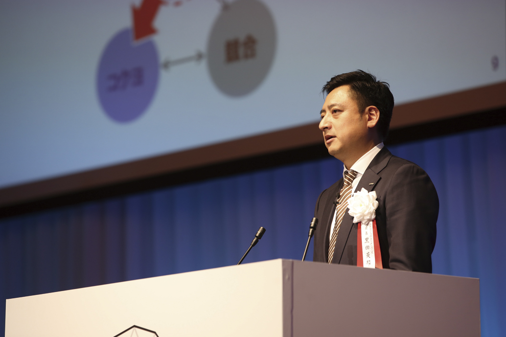 黒田社長は開会で「政府が主導する働き方改革実現は普遍的テーマであり、機運が盛り上がっている今、この新契機にのりたい。そのため、来春からご賛同いただける販売店と『働き方改革』提案営業を開始し、販売店の皆さまの提案営業活動を盛り上げたい」と挨拶し、共に持続的に成長していきたいとした。