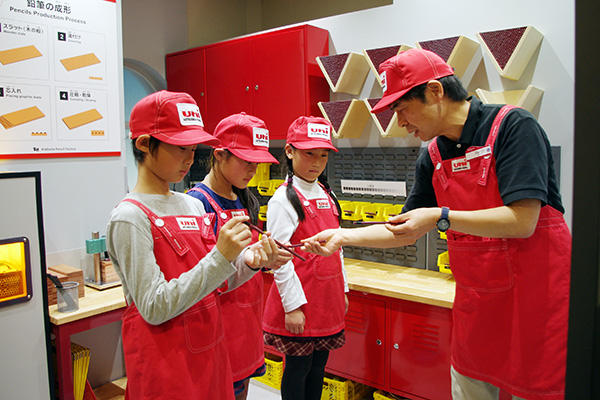 三菱鉛筆は、2009年10月に「キッザニア東京」のオフィシャルサポーターとして、「筆記具屋」パビリオンを出展。今年は創業130年目を迎え、高級鉛筆「uni」に親しんでもらうことで、改めてこどもたちに「鉛筆の素晴らしさ」「書くことの楽しさ」を知ってもらおうとパビリオンを進化させた。
