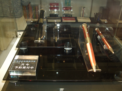 同コレクションで、オリジナル筆記具ブランド「ROMEO」の復刻第3弾「ROMEO No.3」ボールペン」(受注販売、6,825円~8,925円)のサンプルを紹介、時計の竜頭をモチーフにした天冠のデザインが特徴で、太軸と細軸を揃えた。またブラックカラーが鮮やかな限定品、ROMEO鉛筆(150円)も紹介された。