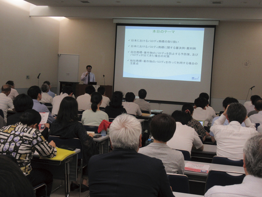 セミナー第1部は、黒川朋也弁理士(創英国際特許法律事務所副所長)による「日本におけるパロディ商標の考え方」をテーマに60分講演。この中で同氏は「日本で、パロディ商標を直接規制・許容する法律はなく、商標法やその他の関連する法律の解釈に委ねられる」と説明。最近マスコミにも取り上げられた、腕時計や菓子の実例を紹介した。
