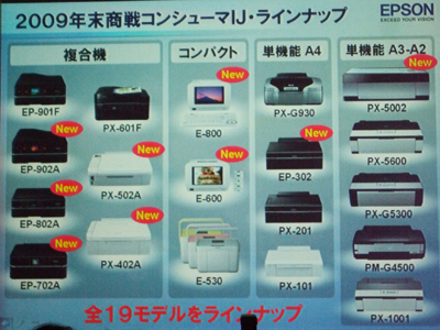 新製品のラインナップは複合機が5機種とプリンター単機能機が1機種の6機種。このうち複合機の3機種に無線LAN対応機を投入する。家庭内では無線LAN搭載のノートPC、ネットブック、家庭用ゲーム機などが普及しており、今後の拡大に対応する。