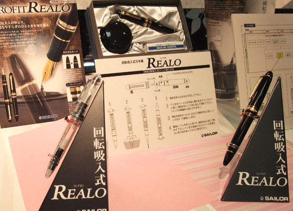 セーラー万年筆(碓井初秋社長)の「2009セーラー・ステーショナリーショー」が、10月6日、墨田区の国際ファッションセンタービルで行われ、280社が来場する予定。会場正面にはこの秋発売の新製品をずらりと展示し、中でも同社のロングラン製品、新回転吸入式「プロフィット・レアロ万年筆」(21金ペン、3万1500円)、万年筆用超微粒子顔料インク「青墨」「極黒」(ともに1瓶2100円)、鎌倉彫万年筆(42万円)などに、来場者の目が集まった。