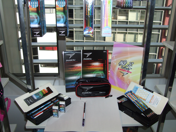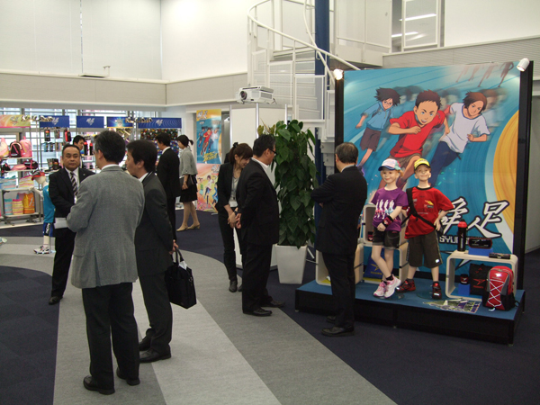アキレスの人気シューズ「瞬足」の合同展示会(伊藤忠商事主催)が、10月21日~22日、北青山のスタジアムプレイス青山で行われ、アパレル、自転車などサブライセンシー各社の2010年春夏向け製品が展示された。文具ではショウワノートが出展した。